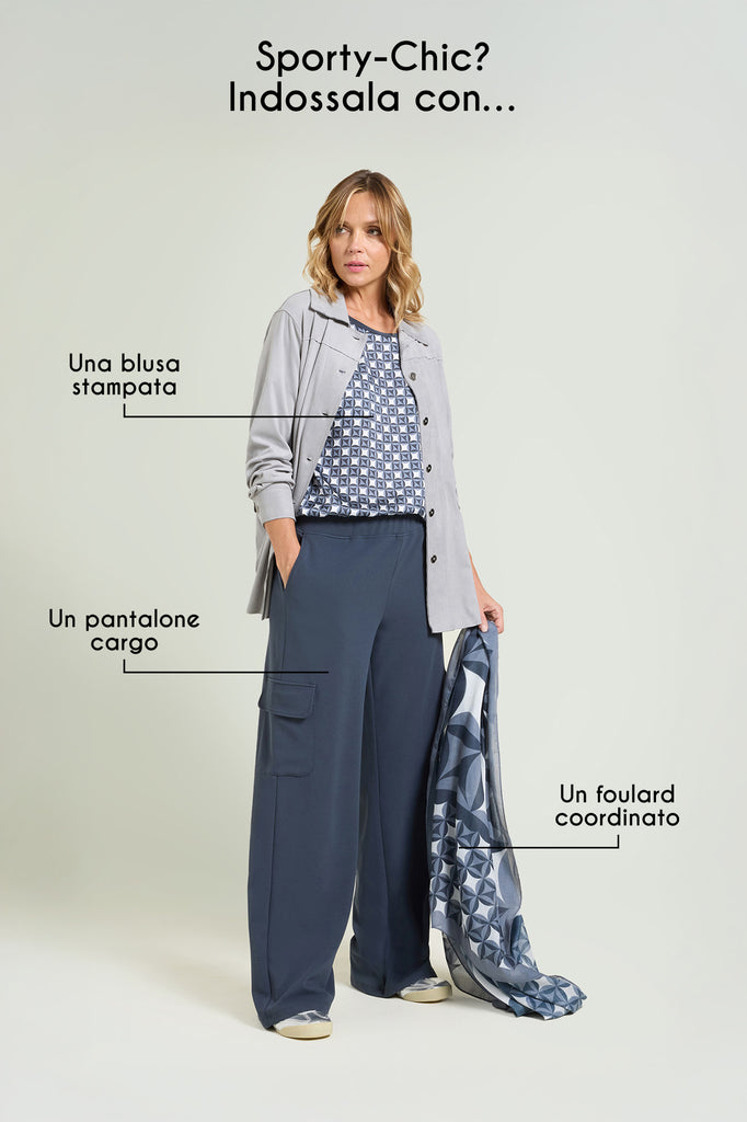 La modella indossa la taglia 37 (46 IT) ed è alta 175 cm
