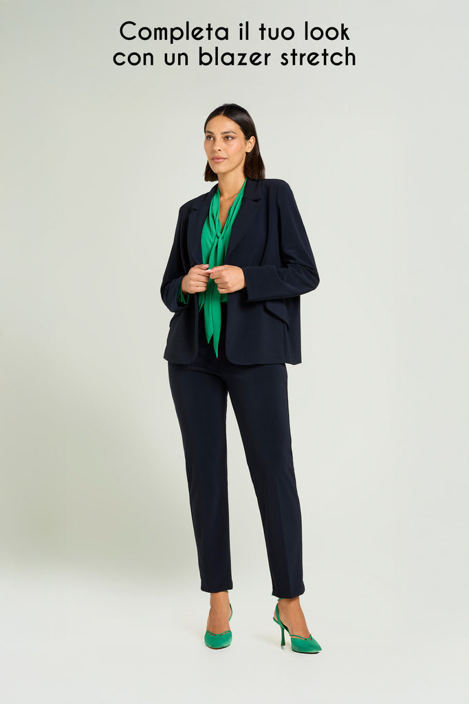"La tua vita non è mai stata così comoda": pratici e confortevoli, con la loro vita elasticizzata senza zip, i Pull-On di Luisa Viola sono realizzati in diversi tessuti, colori e fit. Questa versione skinny in compatto stretch è abbinabile anche a completo con giacche nello stesso tessuto.