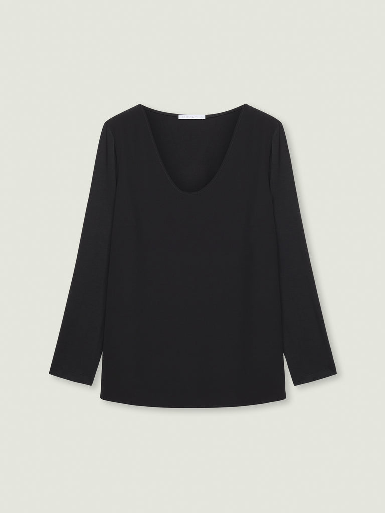 T-shirt passepartout in jersey di viscosa stretch con davanti in crepe de chine. Scollo a "V" stondato, spacchi laterali.