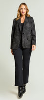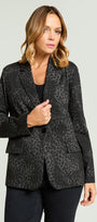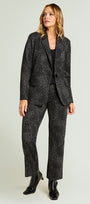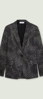 In piena sintonia con le tendenze di stagione, un blazer dove il maculato è stato reinterpretato in modo portabile ed elegante, stampandolo su un fondo grigio melange.