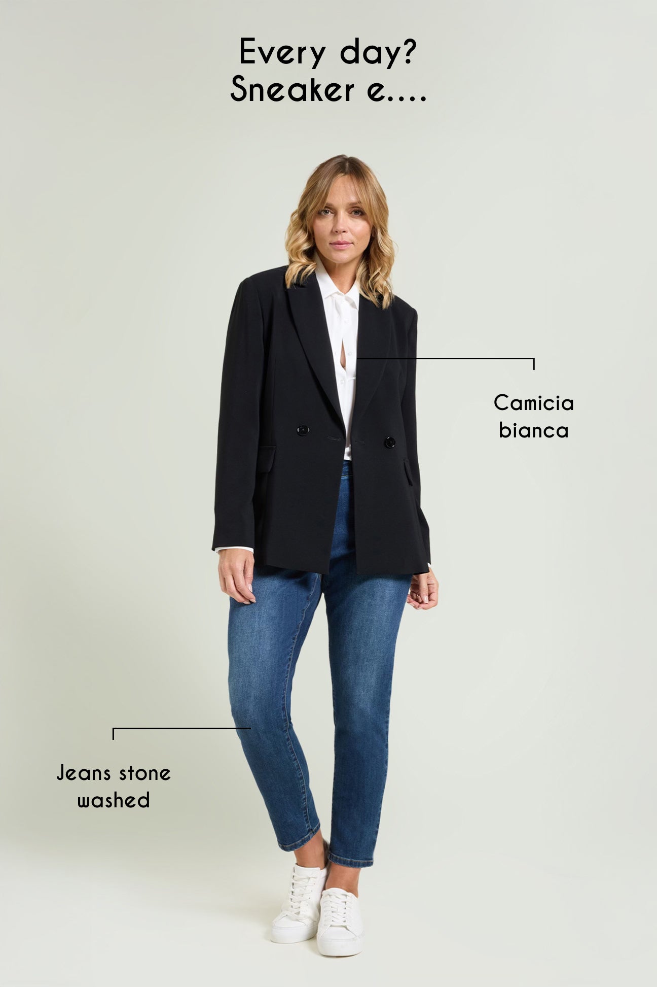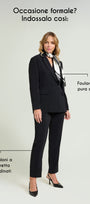 La giacca doppiopetto nera è un importante must-have della nuova stagione. L’attenta costruzione modellistica, con uno studio particolarmente accurato delle proporzioni, fa sì che questo capo valorizzi ogni silhouette, indipendentemente dalla taglia. Versatile e adatta a tutte le occasioni, presenta un sormonto ridotto rispetto alle tradizionali giacche doppiopetto, così da risultare donante sia quando è allacciata che lasciata aperta.