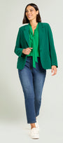 Blazer elasticizzato realizzato in compatto stretch. Linea leggermente sciancrata, collo e rever, chiusura con un bottone, pattine, sfoderato. Abbinabile anche a completo con pantaloni e gonne nello stesso tessuto.