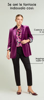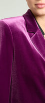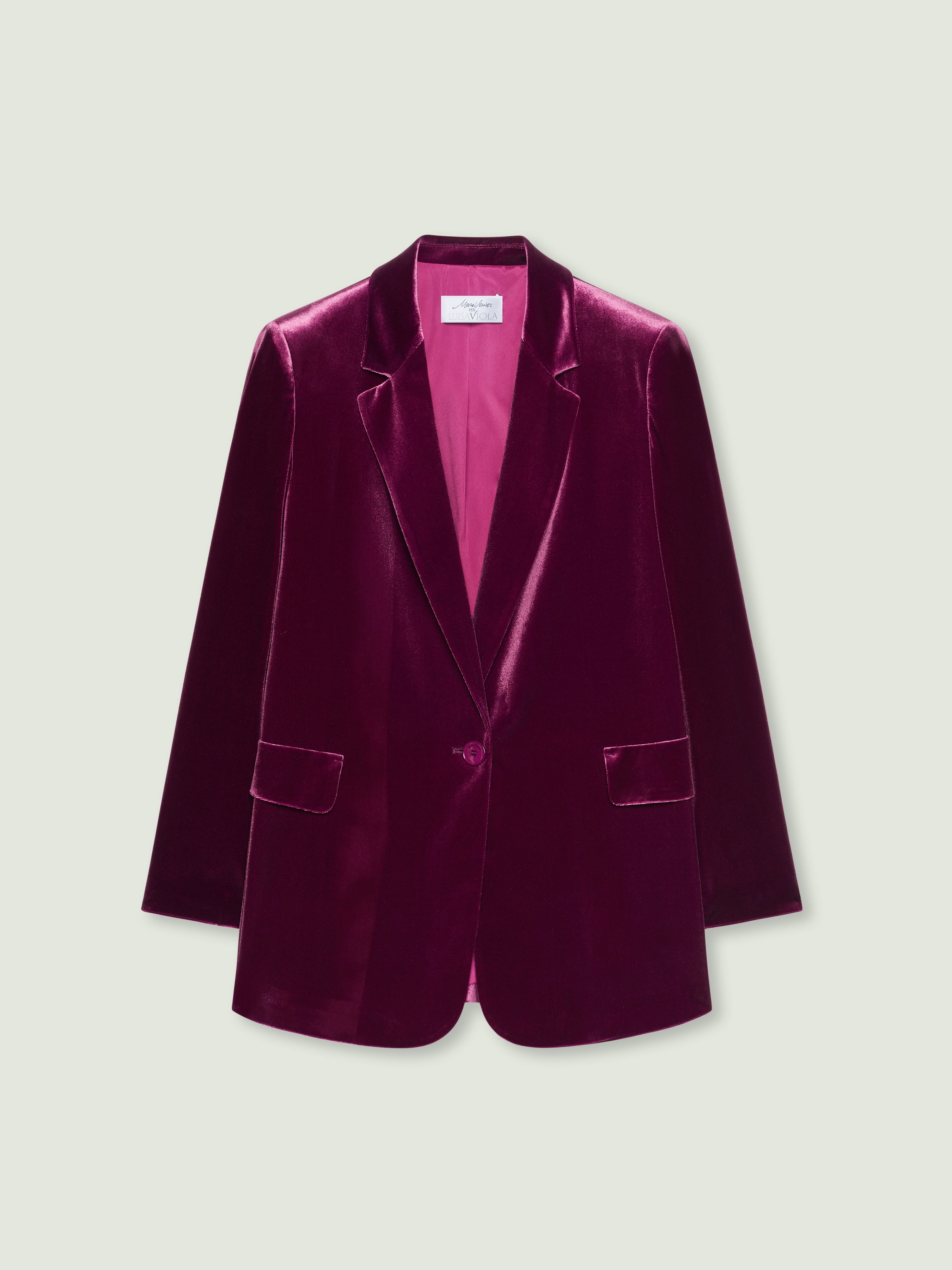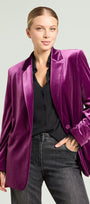 Blazer dalla linea leggermente sciancrata, realizzato in un confortevole velluto elasticizzato. Collo e rever, pattine, chiusura con asola e bottone, foderato. Abbinabile anche a tailleur con pantaloni nello stesso tessuto.