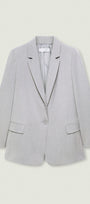 Seguendo le tendenze che uniscono il maschile al femminile, una nuova interpretazione del blazer, espressione di uno stile sofisticato e luminoso, grazie ai punti luce che lo rendono protagonista. Perfetto per diverse occasioni, si può indossare anche in coordinato con pantaloni dello stesso tessuto, con o senza borchiette.