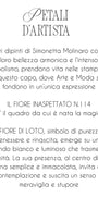 I Fiori dipinti da Simonetta Molinaro, con la loro bellezza armonica e l'intenso simbolismo, prendono vita in questo capo esclusivo dove Arte e Moda si fondono in un'unica espressione.