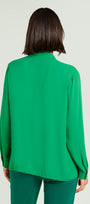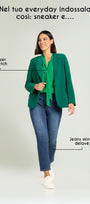 Camicia in doppia georgette dalla linea dritta con spacchi laterali. Chiusura nascosta con bottoni, sciarpina portabile in diversi modi, manica lunga con polso.