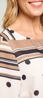 Una stampa esclusiva che nasce dall'idea di un patchwork di foulard a pois con bordi rigati.