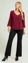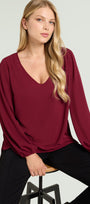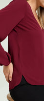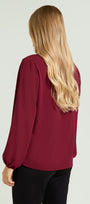 Blusa in cloque' caratterizzata da un femminile scollo a "V", linea dritta con spacchetti stondati, manche a sbuffo.