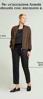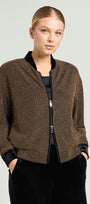 Amatissimo da star e designer, il bomber è il giubbotto must have della fall winter '25. Per le special occasion Luisa Viola lo propone in un tessuto particolamente confortevole, caratterizzato da una superficie lurex che richiama con raffinatezza i riflessi dell'oro antico.
