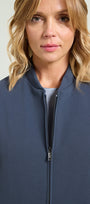 Giubbotto in tessuto super-stretch: uno "scuba crepe" dalla caduta fluida caratterizzato da un rovescio raso che dona una piacevole sensazione sulla pelle. Chiusura con zip, collo a listino dalla classica forma del bomber, tasche a filetto, sfoderato. Tiretto con finitura gunmetal, personalizzato con il logo "V" di Luisa Viola.
