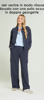 Amatissimo da star e designer, il bomber è il giubbotto must have della fall winter '25. Luisa Viola lo propone in un tessuto particolarmente confortevole, da portare con tutto, anche a completo con pantaloni e gonne nello stesso tessuto.