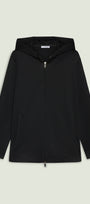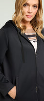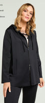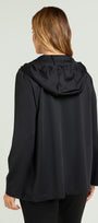Caban in tessuto tecnico bi-stretch dalla linea scivolata. Cappuccio con coulisse e nastro gros grain. Chiusura con zip, doppio cursore. Tiretti ed occhielli in metallo con finitura nikel free, personalizzati con il logo "V" di Luisa Viola.