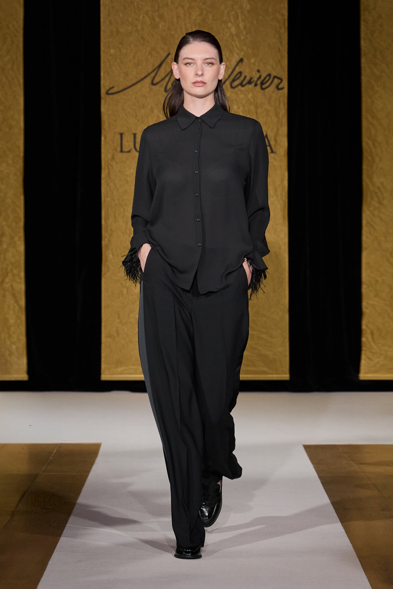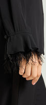 Il dettaglio in piume, unito internamente al polso con listino e bottoncini, è staccabile: caratteristica utile per il lavaggio ma anche per la versatilità della camicia, portabile con o senza il dettaglio in Marabù.