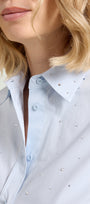 Una camicia che sposa la tendenza dei capi appartenenti al guardaroba maschile ma con un tocco femminile, caratterizzata da una pioggia di piccoli strass crystal.