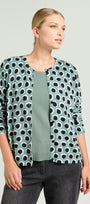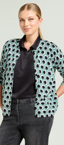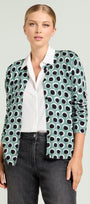 Cardigan fantasia in viscosa comfort dalla linea dritta. Punto rasato in finezza 12 con bordi in costa, scollatura rotonda, chiusura con bottoni.