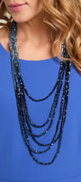 Collana multifile di Jais sfaccettati con taglio prisma a formare un elegante effetto degradè azzurro-blu. Jais in vetro colorato.