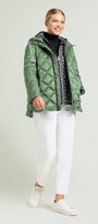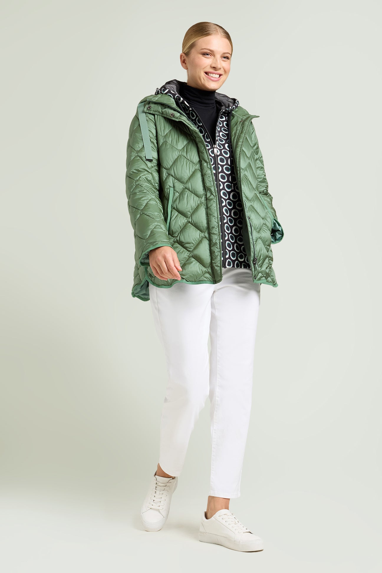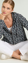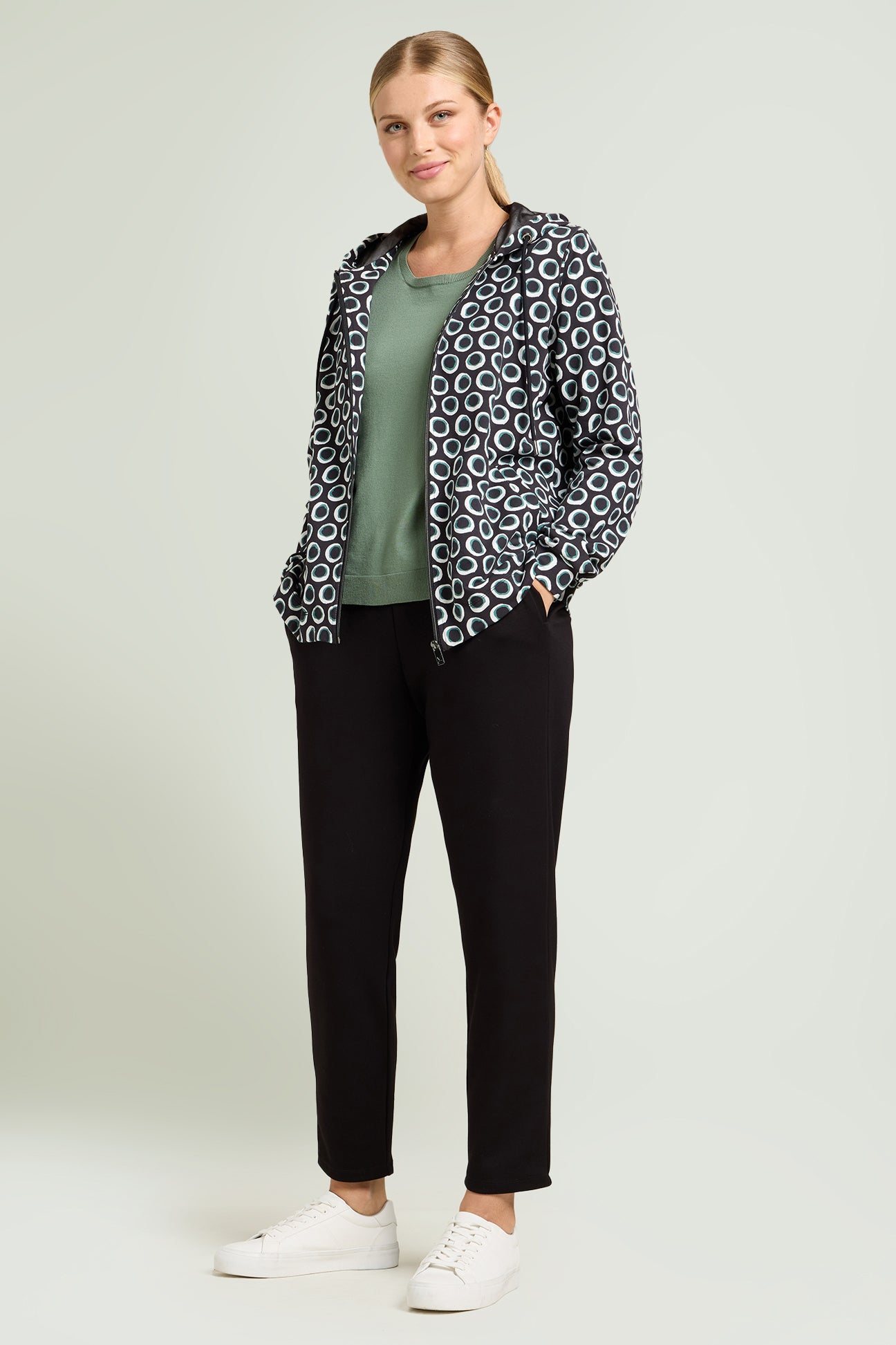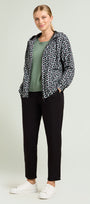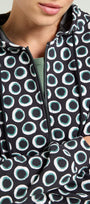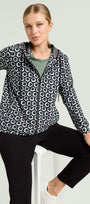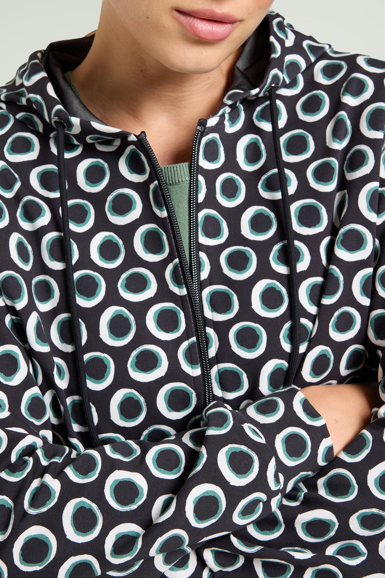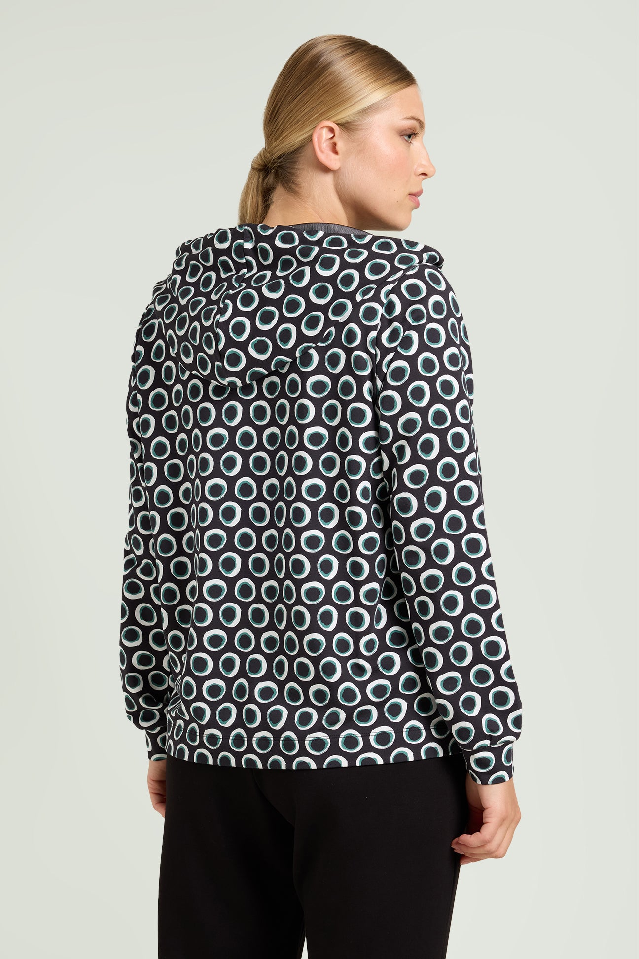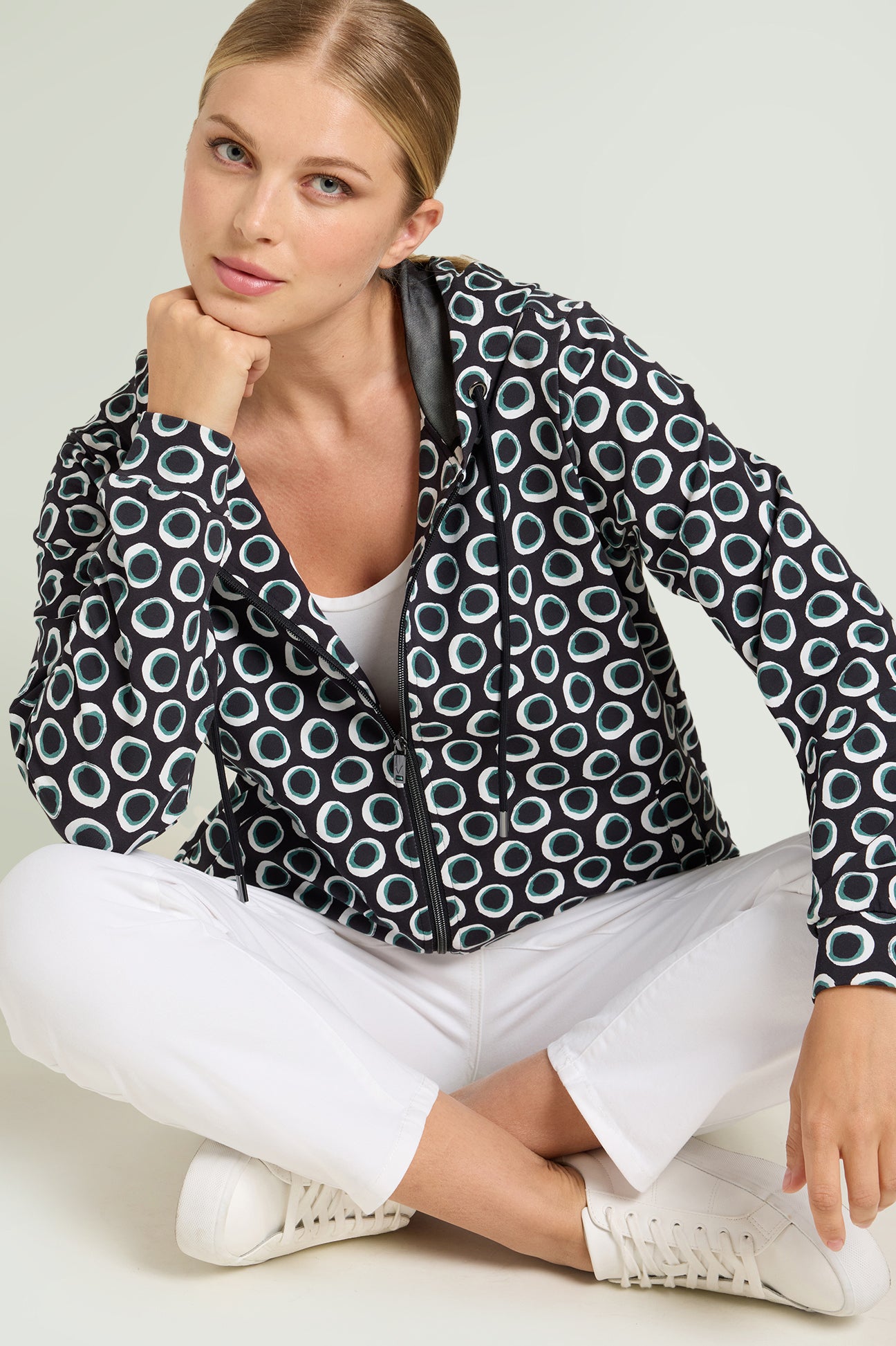 Felpa fantasia in cotone stretch dalla linea dritta. Chiusura con zip, cappuccio con coulisse doppiato in tulle, tasche a filetto. Tiretto con finitura gunmetal, personalizzato con il logo "V" di Luisa Viola.