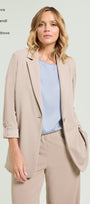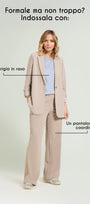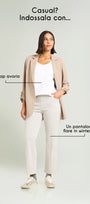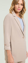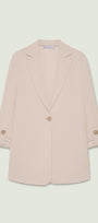 Giacca destrutturata in tessuto super-stretch dalla linea leggermente affiancata. Collo e rever, chiusura con un bottone, fondo manica con linguetta e bottone, sfoderata. Abbinabile anche a completo con pantaloni nello stesso tessuto.