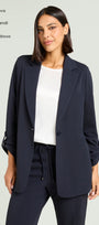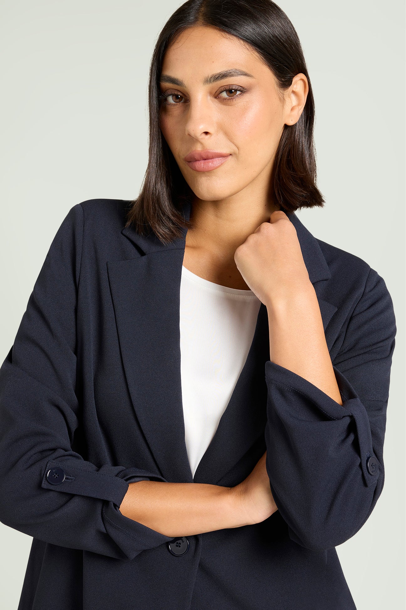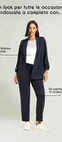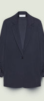 Giacca destrutturata in tessuto super-stretch dalla linea leggermente affiancata. Collo e rever, chiusura con un bottone, fondo manica con linguetta e bottone, sfoderata. Abbinabile anche a completo con pantaloni nello stesso tessuto.