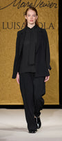 Disponibile in nero e nel nuovo color Porpora. Abbinabile anche a tailleur con pantaloni nello stesso tessuto.