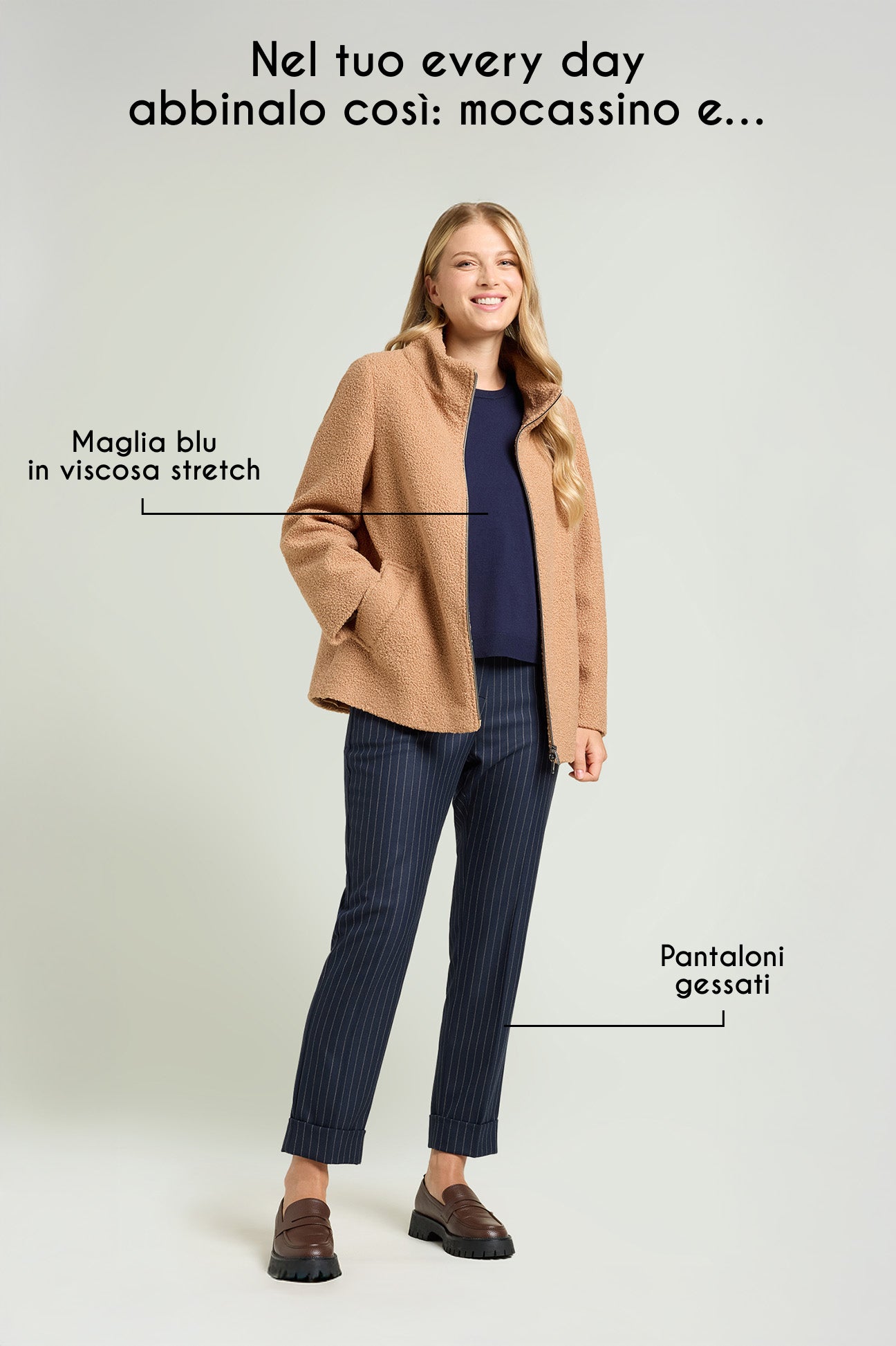 Un capo svelto, ideale per l'autunno, realizzato in un tessuto morbido e piacevolissimo al tatto.