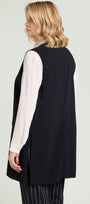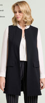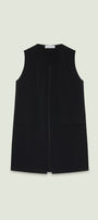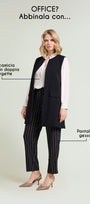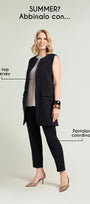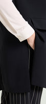 Gilet in crepe cady dalla linea dritta con alti spacchi laterali. Tessuto stretch four season. Girocollo, pattine, semifoderato.