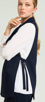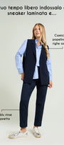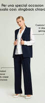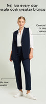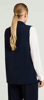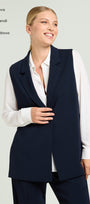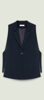 Giacca senza maniche ad effetto gilet in crepe cady. Tessuto stretch four season. Collo e rever, chiusura con un bottone. Alti spacchi laterali chiusi da cinturino regolabile. Abbinabile a pantaloni nello stesso tessuto per creare un tailleur coordinato.