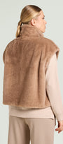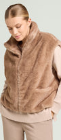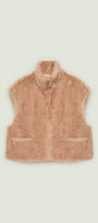 Gilet realizzato in tessuto soft-touch. Collo a listino, chiusura con zip, tasche.