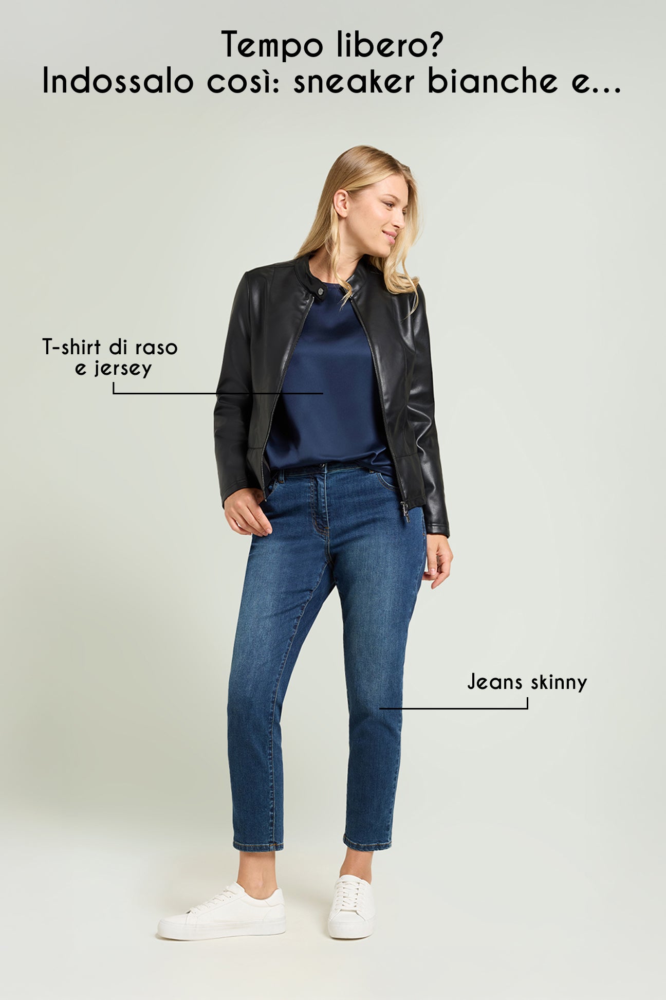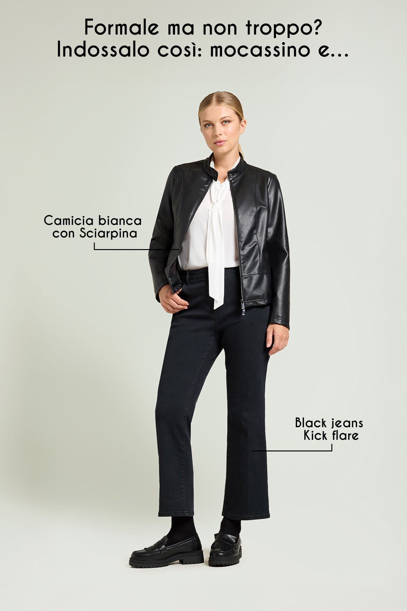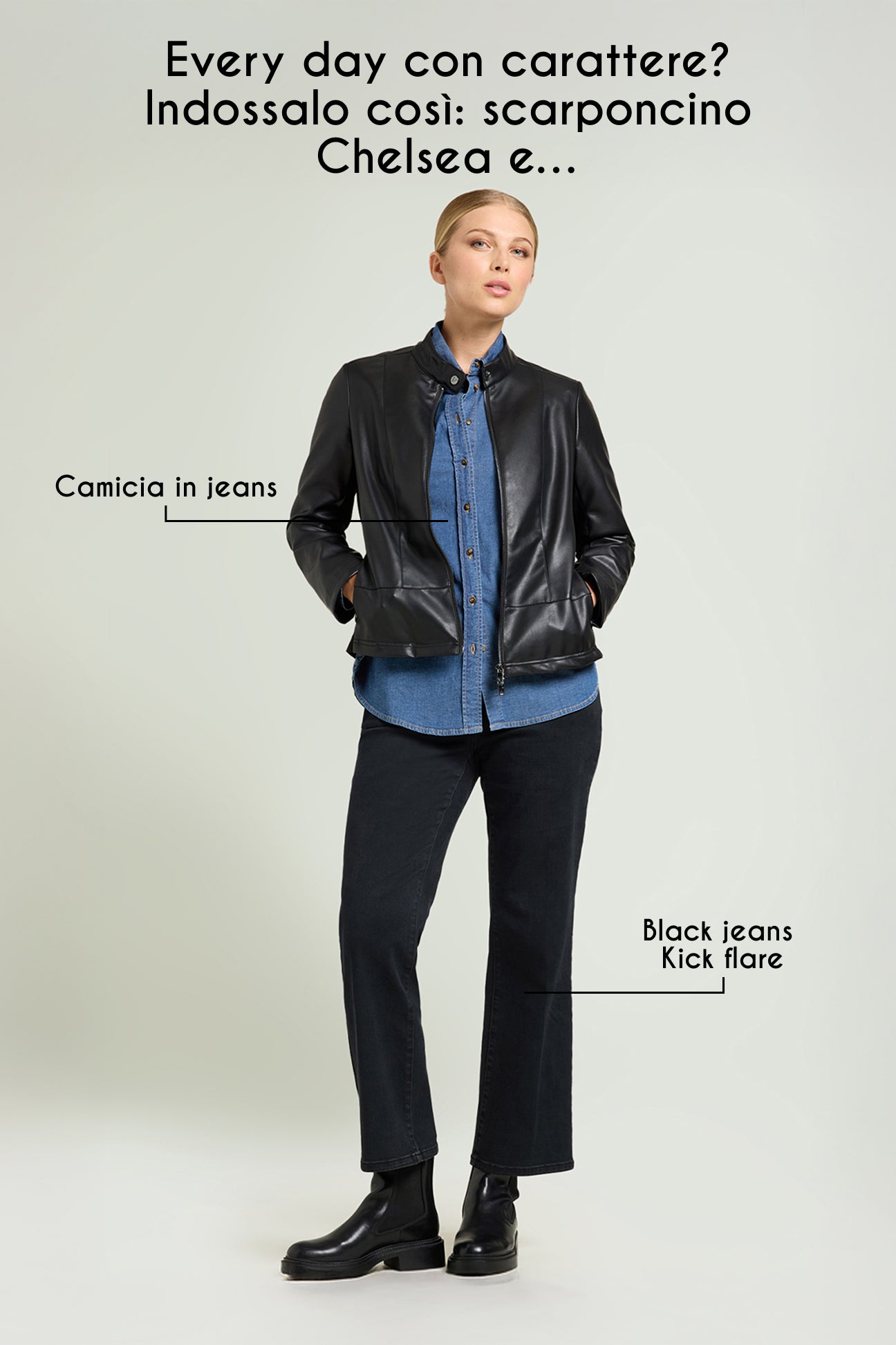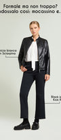 Un capo dall'uso trasversale che non deve mai mancare nel guardaroba, perché risolve il look in modo contemporaneo per qualsiasi occasione. Luisa Viola lo ha rivisto in chiave decisamente femminile: i fianchetti e il sottomanica in tessuto elastizzato sono il valore aggiunto in termini di comfort e di vestibilità.