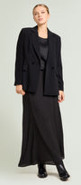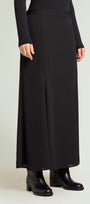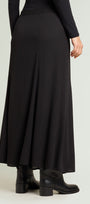 Gonna lunga a sei teli dalla linea a sirena realizzata in una georgette impreziosita da una pioggia di micro-strass in tinta. Cinturino estensibile con gros grain elastico inserito nel tratto dietro. Chiusura con zip laterale a scomparsa.