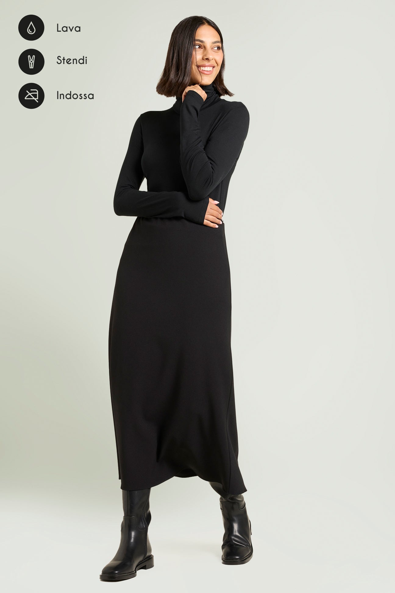 Questa gonna fa parte della "Performance Collection", ed è realizzata in un tessuto Performance dalla facile manutenzione: il capo si lava, si stende e si indossa senza la necessità di dover essere stirato.