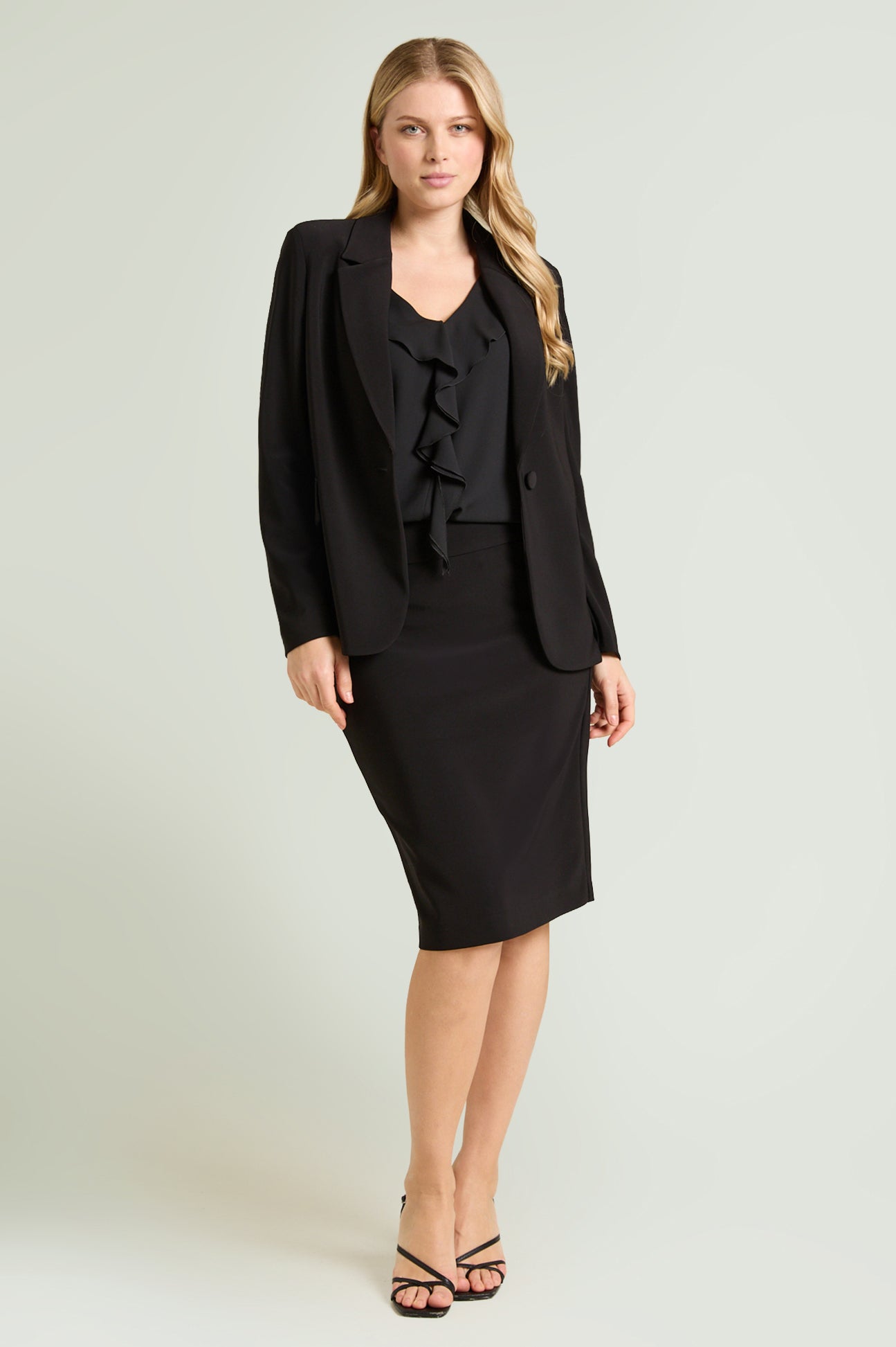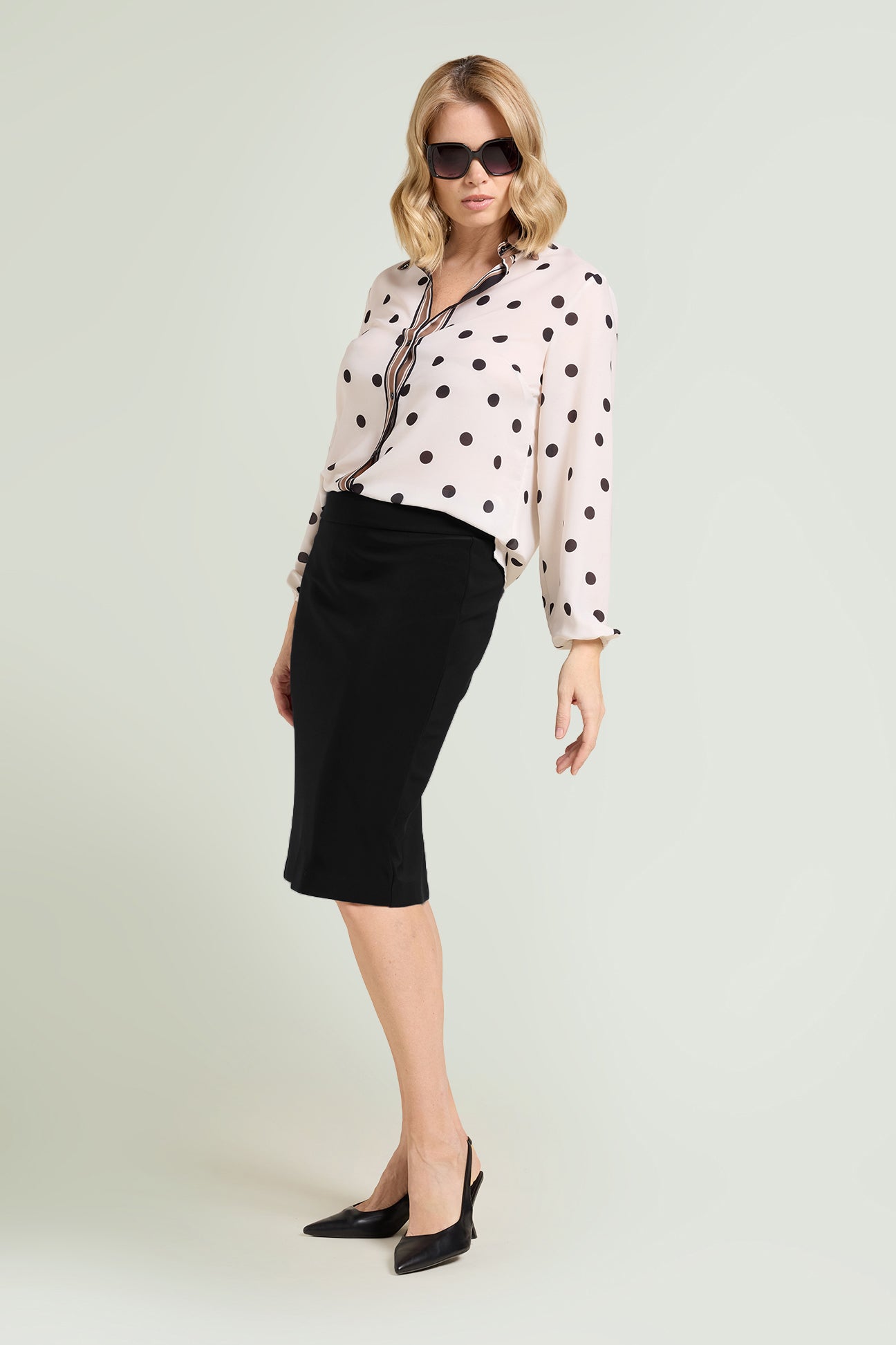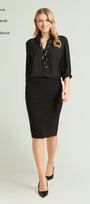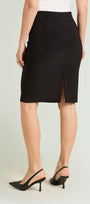 Gonna tubino passepartout in Compact stretch dalla linea fitted. Tessuto elasticizzato, cintura in forma con baschina estensibile. Spacco su taglio centro dietro. Costruzione Pull-On senza zip. Sfoderata. Accortezza modellistica: la cucitura del fianco è spostata leggermente verso il davanti, rendendo più armoniosa la figura.