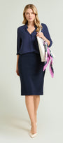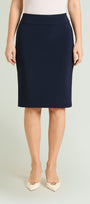 Gonna tubino passepartout in Compact stretch dalla linea fitted. Tessuto elasticizzato, cintura in forma con baschina estensibile. Spacco su taglio centro dietro. Costruzione Pull-On senza zip. Sfoderata. Accortezza modellistica: la cucitura del fianco è spostata leggermente verso il davanti, rendendo più armoniosa la figura.