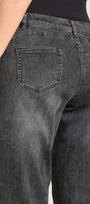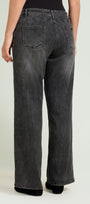 Pantaloni cinque tasche in Denim stretch (9,5 once) dalla linea ampia. Punto vita leggermente abbassato, cintura in forma con lavorazione estensibile e passanti, chiusura davanti con zip nascosta e bottone. Trattamento stone washed con leggere sabbiature, impunture in tinta. Bottone e rivetti gunmetal con il logo "V" di Luisa Viola.