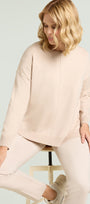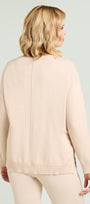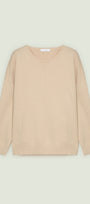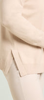 Maglia in viscosa comfort dalla linea comoda caratterizzata da una nervatura centrale. Punto rasato in finezza 7 con bordi in costa, scollatura rotonda, spacchi laterali sormontati.