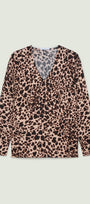 Il maculato -trend di stagione- viene reinterpretato in modo femminile con un armonico movimento grafico, dove il nero ed il mocha mousse si sposano ad un delicato beige rosato. Una stampa esclusiva Luisa Viola.