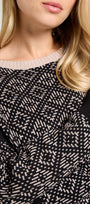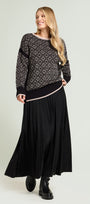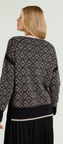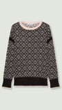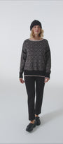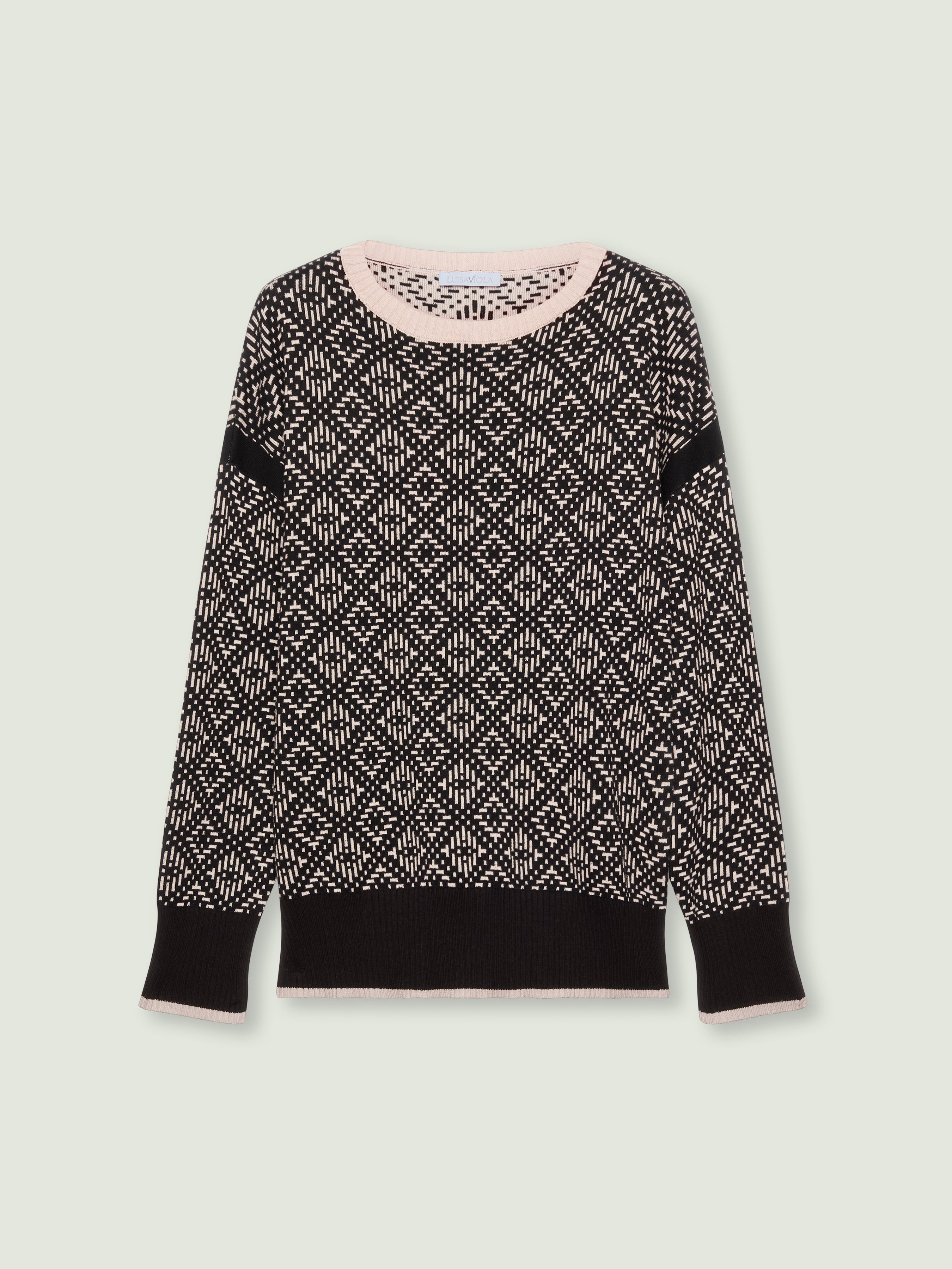 Maglia dalla vestibilità comoda con microdisegno nero e sabbia realizzato con tecnica jacquard. Finezza 14, bordi in costa.