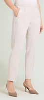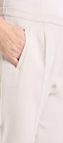 Pantaloni in crepe cady con fit sigaretta. Tessuto stretch four season. Punto vita regolare, chiusura davanti con zip nascosa e bottone, cintura estensibile con elastico inserito nel tratto dietro, tasche a filetto, piega stirata.