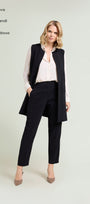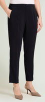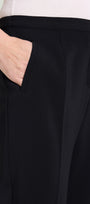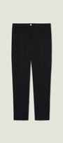 Pantaloni in crepe cady con fit sigaretta. Tessuto stretch four season. Punto vita regolare, chiusura davanti con zip nascosa e bottone, cintura estensibile con elastico inserito nel tratto dietro, tasche a filetto, piega stirata.