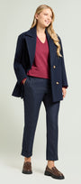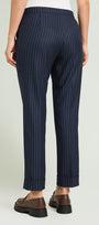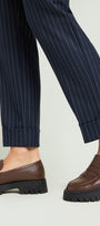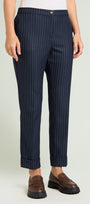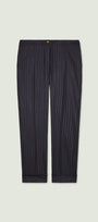 Pantaloni Chinos in tessuto gessato stretch. Punto vita regolare, cinturino con lavorazione estensibile, chiusura davanti con zip nascosta e bottone, piega stirata, tasche all'americana, risvolto.