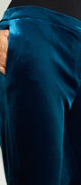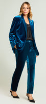Come insegna la tradizione sartoriale, il capo è tagliato con la direzione del velluto rivolta verso l'alto, in modo da ottenere un effetto uniforme del tessuto, un colore più intenso e un aspetto prezioso. Disponibile in nero e in due colori moda: porpora e blu pavone. Abbinabile anche a tailleur con blazer nello stesso tessuto.
