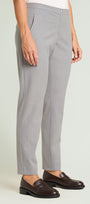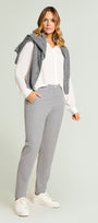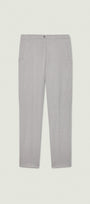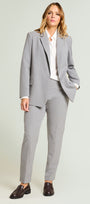 Seguendo le tendenze che uniscono il maschile al femminile, una nuova interpretazione del pantalone grigio melange, espressione di uno stile sofisticato e luminoso, grazie ai punti luce che lo rendono protagonista. Si può indossare anche in coordinato con un blazer nello stesso tessuto.