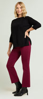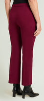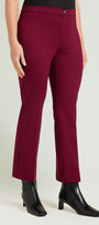 Pantaloni kick Flare in Punto Stoffa stretch con vestibilità "No-Hips". Punto vita regolare, cinturino con lavorazione estensibile, chiusura davanti con zip nascosta e bottone, piega stirata.