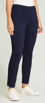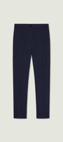 Pantaloni Skinny con vestibilità "No-Hips" realizzati in un confortevole tessuto stretch con armatura diagonale. Punto vita regolare, cinturino con lavorazione estensibile, chiusura davanti con zip nascosta e bottone, piega stirata.