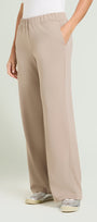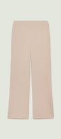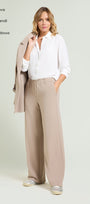 Pantaloni ampi in tessuto super-stretch: uno "scuba crepe" dalla caduta fluida caratterizzato da un rovescio raso che dona una piacevole sensazione sulla pelle. Cintura estensibile con elastico inserito all'interno, tasche all'americana, costruzione Pull-On.