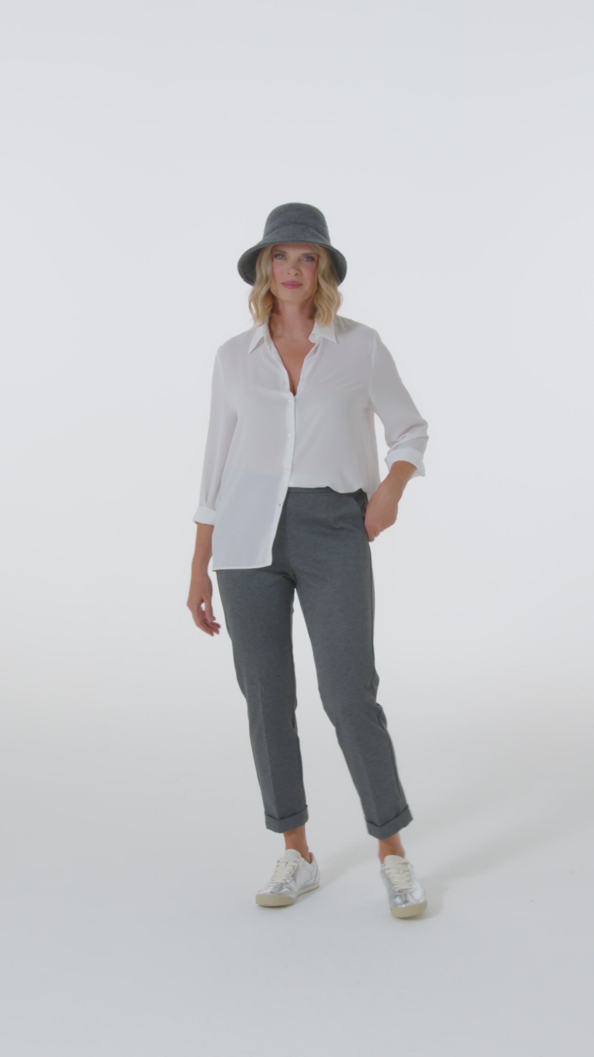 "La tua vita non è mai stata così comoda": pratici e confortevoli, con la loro vita elasticizzata senza zip, i Pull-On di Luisa Viola sono realizzati in diversi tessuti, colori e fit. In questa versione è disponibile in quattro varianti: blu, nero, moro e grigio melange.