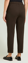 Pantaloni Chinos in Punto Milano stretch. Punto vita regolare, Cinturino estensibile con gros grain elastico inserito all'interno, tasche all'americana, piega stirata. Costruzione Pull-On.