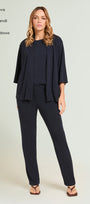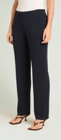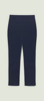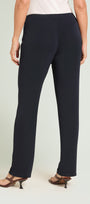 Pantaloni con gamba dritta realizzati in un jersey fluido elasticizzato dall'aspetto serico e compatto. Punto vita regolare. Cinturino estensibile con gros grain elastico inserito all'interno. Costruzione Pull-On.