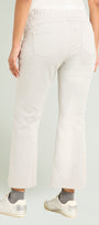 Pantaloni in winter cotton dalla linea kick Flare. Tessuto stretch, punto vita leggermente abbassato, cinturino estensibile con gros grain elastico inserito all'interno. Davanti con tasche jeans e finta chiusura, dietro con baschina e tasche applicate. Rivetti gunmetal con il logo "V" di Luisa Viola.