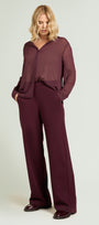 Pantaloni realizzati un un Punto Milano elasticizzato dalla bella caduta e mano morbida. Linea ampia wide leg. Punto vita regolare, cintura estesibile con gros grain elastico inserito all'interno, tasche all'americana, costruzione Pull-On.